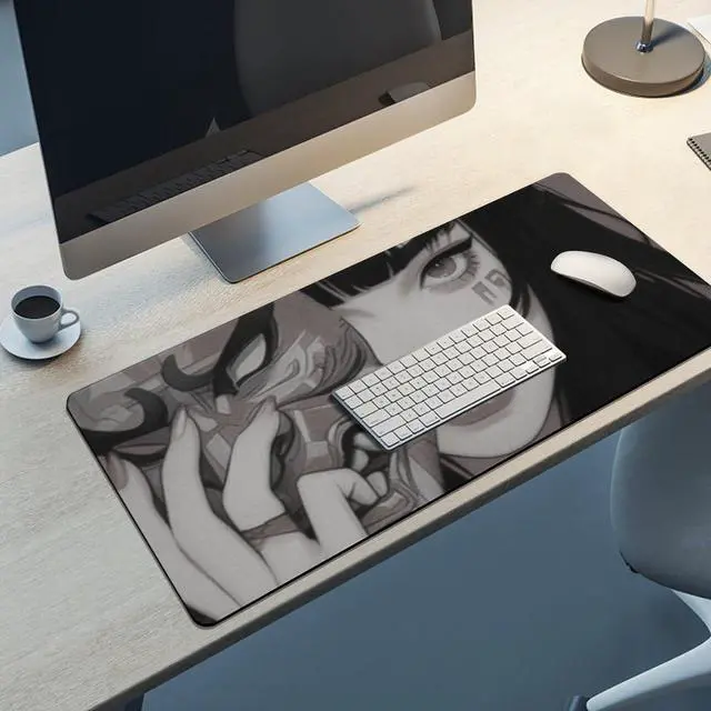 QEOPGNE Gaming Mouse Pad Large Mousepad Female Samurai Anime Girl Cool Retro Japanese Desk Mat for Keyboard and Mouse Mat Non-Slip Rubber Desk Pad 40x90cm