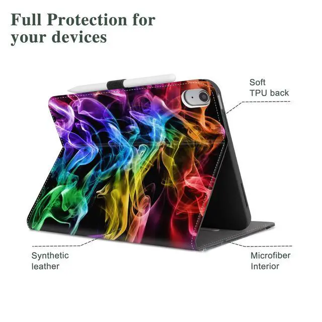 Vimorco Case for iPad (A16) 11th Generation 2025, for iPad 11th/10th Generation Case, Faux Leather Protective Adjustable Cover, Auto Sleep/Wake, Card Pocket with Pencil Holder, Colorful Smoke