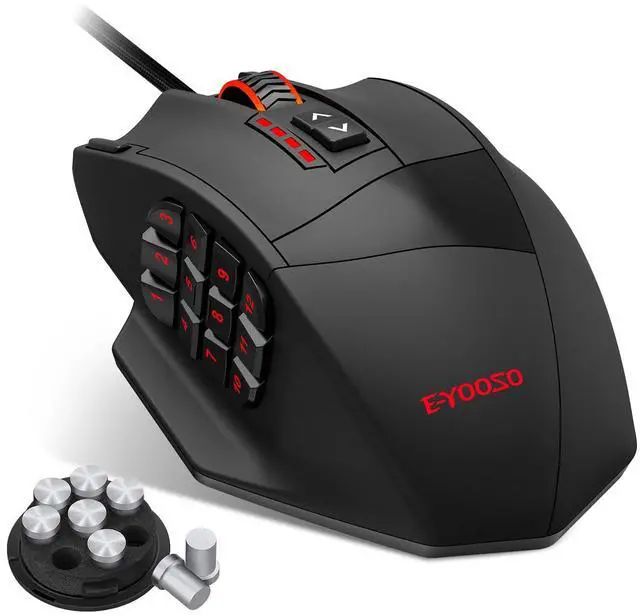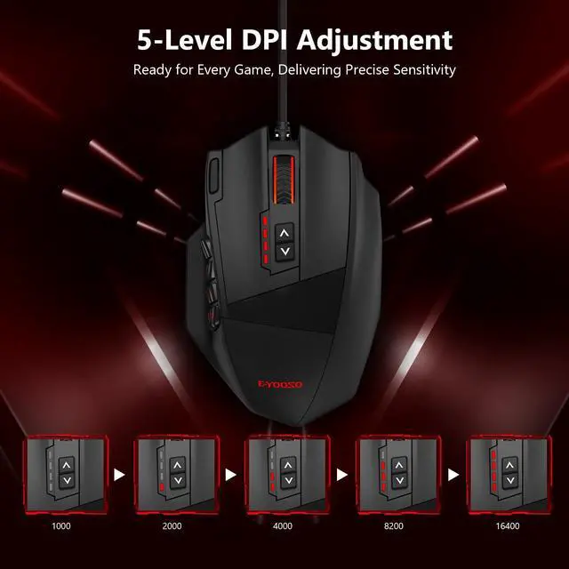 E-YOOSO MMO Gaming Mouse, 16400 DPI High Precision Wired RGB Mice, 18 Programmable Buttons, Software Supports,Rapid Fire USB Gaming Mouse with 8 x 2.4g Weight Tuning for PC Laptop MOBA-FPS, Black