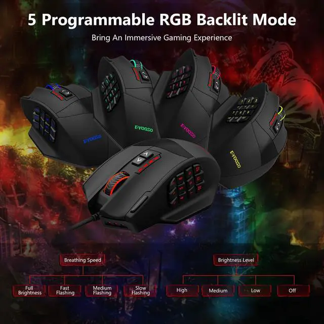 5 RGB Decent Backlit Modes: Create your exclusive personalized settings with 5 dynamic RGB lighting modes (Flash, Breathing, Full Brightness, rainbow Wave, and oFF). With access to 16.8 million colors, you can match your gear, set the mood for different games, or express your unique style. Every mode is fully customizable through the intuitive software, putting you in control to create an immersive gaming atmosphere that is uniquely yours.