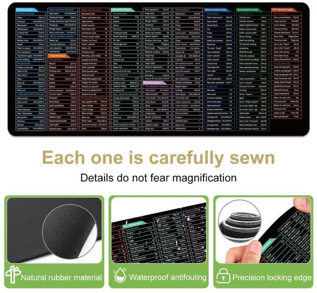 Lucocia Excel/Word/PPT/Windows/CDR Cheat Sheet Desk pad, Large Gaming Office pc Mouse pad, Keyboard Shortcuts Mouse pad, Non-Slip Waterproof Desk mat, XL 31.4 x 11.8 in (TS1020)