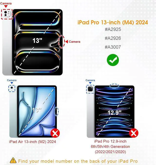 CompatibilityCompatible with iPad Pro 13" M4 (2024); models: A2925, A2926 tablet PC. NOT suitable for other iPad Tablet models.