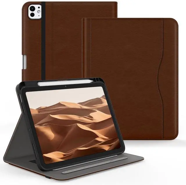 Jarviwiin Case for iPad Pro 11 inch M4 2024 (iPad Pro 5th Generation), Multi-Angle PU Leather Cover for iPad Pro 11" with Pencil Holder/Hand Strap, Auto Wake/Sleep, Brown
