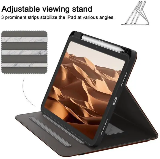 [Multiple Usage Scenarios] The protective case can have three anti-slip strips and a strap to keep the iPad at its most commonly used angle, making it easy for you to use in multiple scenarios, such as typing, vide
