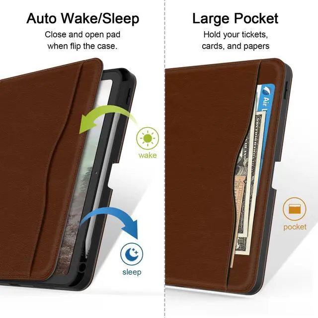 [Full Protection] Made of durable Premium PU leather and soft TPU, front and back covered by soft Premium PU leather, the inside durable TPU can fix your iPad and protect its back cover and four corners, maximum protect your iPad from drop and scratch, the surface is soft and silky to provide a comfortable touch to the skin.