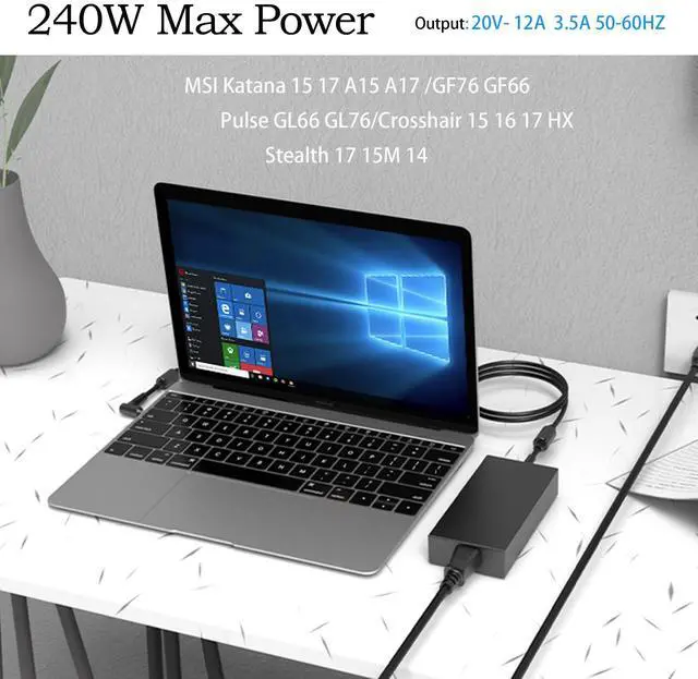 240W 12A Adapter fit for MSI Katana 15 17 b12v b13v b13vk b13vfk Katana GF76 GF66 Delta 15 A5EFK Sword/Crosshair 15 16 HX 17 Pulse GL76 GL66 MS-17K3 MS-14K1 A20-240P2A Gaming Laptop Charger (4.5X3.0)
