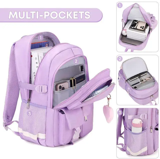 qodbopack School Backpack For Student Women College Middle High Teen Girls Bookbag Waterproof Laptop Bag Purple