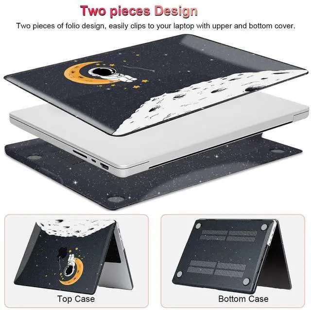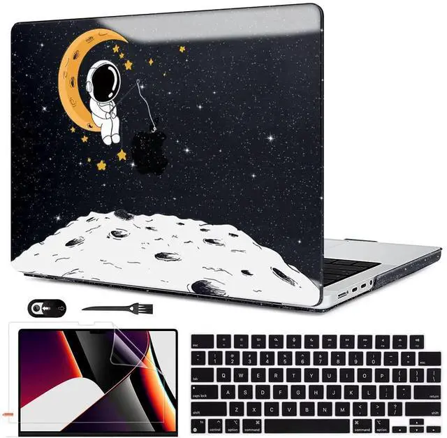 LCMOCICO for M4 MacBook Pro 14 inch Case 2024 2023 2022 2021 Model A3112 A3185 A3401 A2779 A2442 A2918 A2992 M4 M3 M2 M1 Pro/Max & Touch ID, Shiny Pattern Plastic Hard Shell Cover, Astronaut Moon
