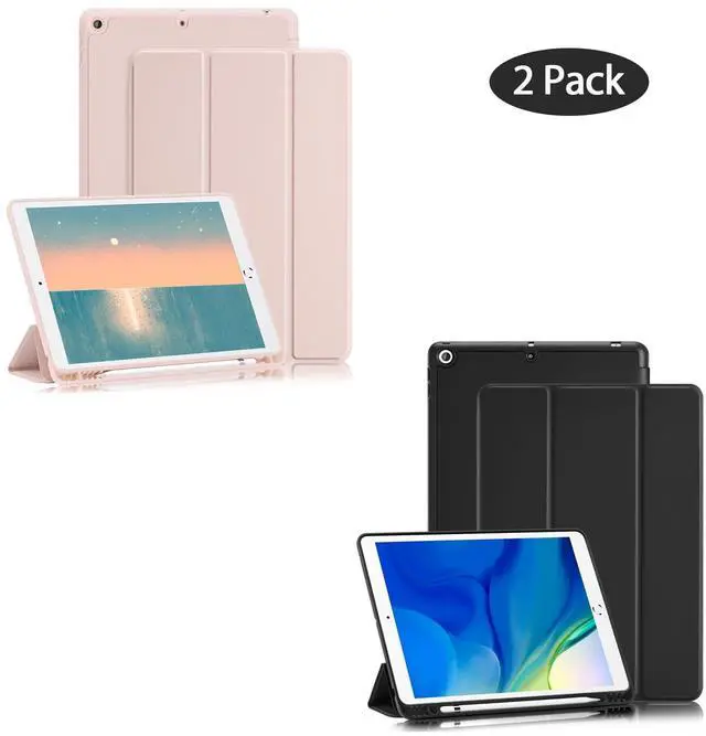 2 Pack GHINL Case for iPad 9th/8th/7th Generation Cases (2021/2020/2019) iPad 10.2-Inch Case with Pencil Holder [Sleep/Wake] Slim Soft TPU Back Smart Stand Protective Cover Cases (Light Pink+Black)