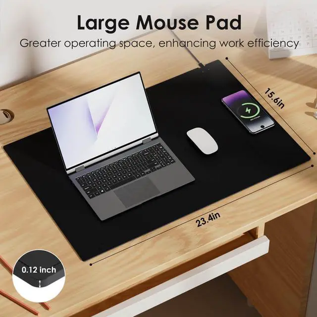 Magnetic Mouse Pad with Wireless Charging, 23.4 '' x 15.6 '' Extra Large Desk Pad, Waterproof and Scratch-Resistant Mousepad, Charcoal Black Computer Mouse Mat for MacBook, PC, Laptop