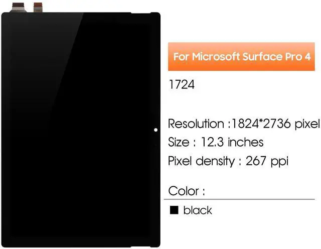 With: For Microsoft Surface Pro 4 Screen Replacement(Black No Frame