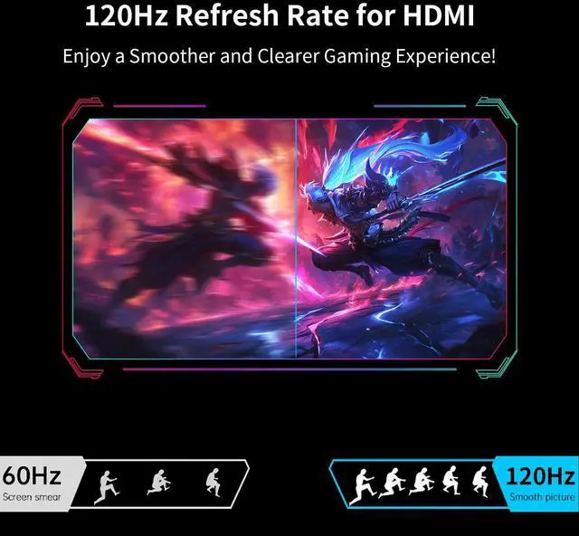 120Hz/144Hz Refresh Rate with AMD FreeSyncThis monitor features a refresh rate of up to 144Hz via USB-C and 120Hz through HDMI, delivering a smooth visual experience that reduces screen tearing and lag. It includes AMD FreeSync technology for seamless motion during fast-paced activities like gaming and streaming.Additionally, the monitor is designed with low blue light technology, helping to reduce eye strain during long hours of viewing.