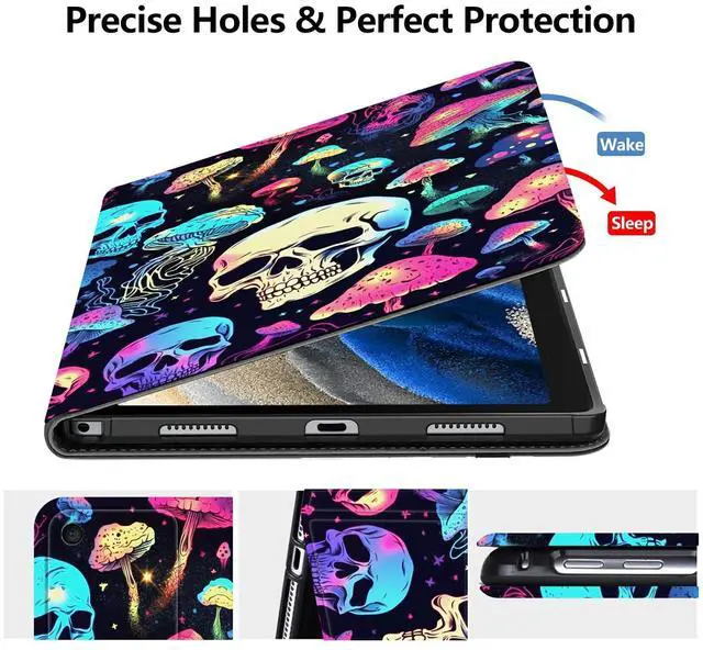DIGTIALL Case for All-New Kindle Fire HD 8 & 8 Plus Tablet (12th /10th Generation-2024/2022/2020 Release) 8", Slim Folding Stand Protive Cover with Auto Wake/Sleep for Fire HD 8, Mushroom Skull