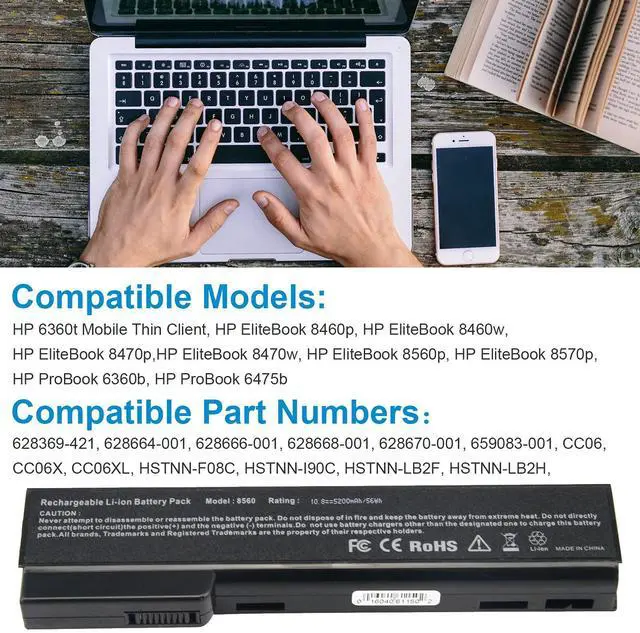 Futurebatt Laptop Battery for HP EliteBook 8460P 8460W 8470P 8560P 8570P; HP ProBook 6360B 6460B 6465B 6470B 6560B 6565B 6570B Notebook, P/N CC06 QK642AA 628666-001 630919-421 HSTNN-F08C HSTNN-OB2G