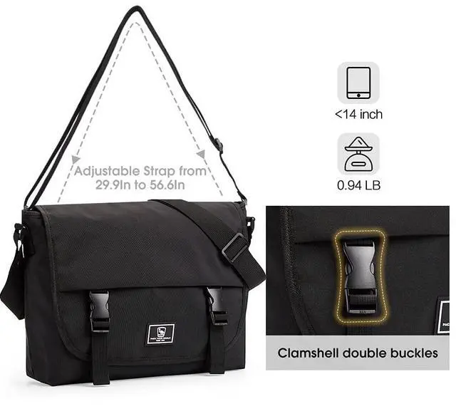 Smart DesignSuper lightweight messenger bag, only 0.94LB. Made of water-resistant and tear repellent 600D polyester fabric with smooth and quality SBS zipper. It is ultralight w