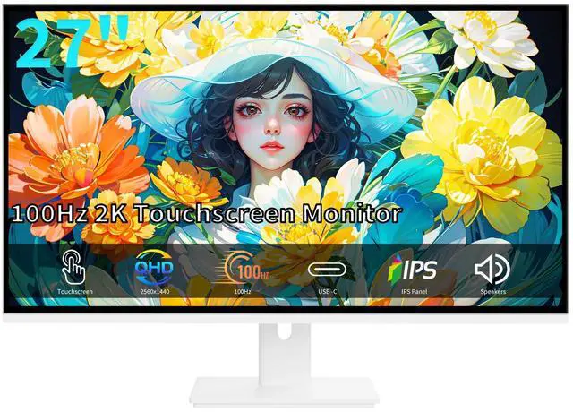 ZFTVNIE 27 Inch Touchscreen Monitor, 2K Gaming Monitor IPS 10-Point Touch PC Display, HDMI VGA USBC QHD 2560x1440 Computer Monitor, 100Hz, Built-in Speakers, White
