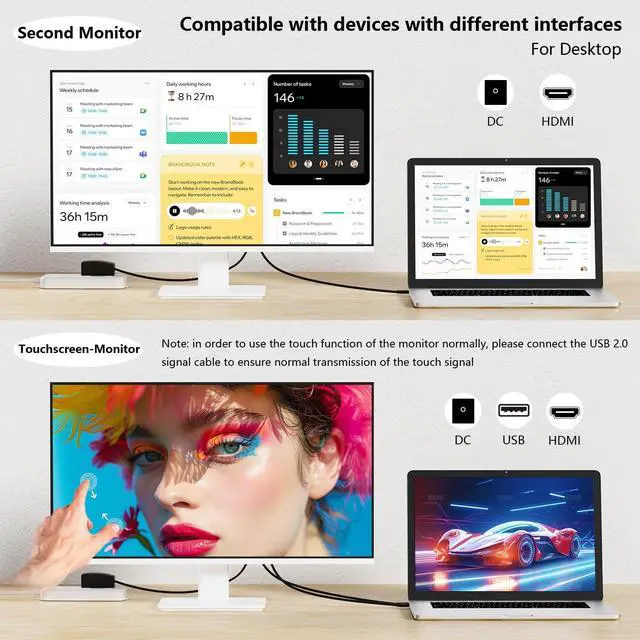 Intuitive Touchscreen Monitor with Multi-Touch Support - Navigate with ease using **10-point touch technology** (assumed based on industry standards). Zoom, swipe, and tap directly on the screen for interactive creativity, presentations, or digital signage. *To use the touch function, you need to connect the USB c touch signal cable.