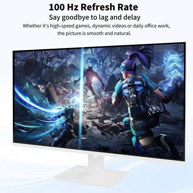 Sleek All-White Design for Modern Spaces - Elevate your setup with a elegant white finish and slim bezels, blending seamlessly with minimalist desks, creative studios, or home offices. Tiltable stand ergonomically optimized for comfort during long sessions.