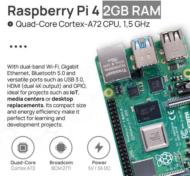 Powerful Computer - Equipped with the latest Raspberry Pi 4, featuring a high-speed 1.5GHz quad-core processor and 2GB of RAM, ideal for even the most demanding applications.