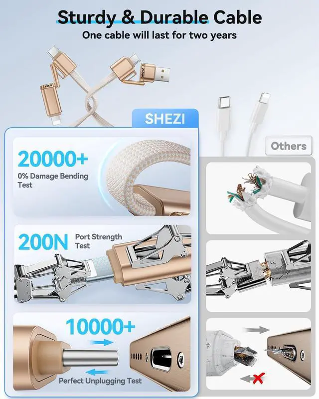 Applestyle 4-in-1 Charging Cable - The Way of Simplicity: SHEZI is the first to launch the new Applestyle Series of 4-in-1 charger cable for devices with USB A to Lightning, USB A to Type C, Type C to Lightning, and Type C to Type C ports. One cable for all your needs. Designed with compactness and practicality in mind, it combines the minimalist look of Applestyle with 4-in-1 ports, bringing you a distinctive, minimalist and luxurious shopping experience