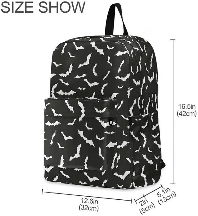 ZzWwR Stylish Bats Halloween Pattern Polyester Computer Backpack Large Daypack for Business Sport Travel School Bookbags