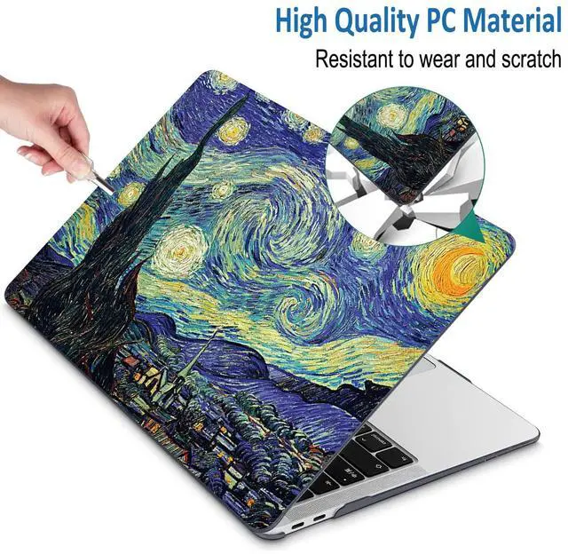 QCzyc Compatible with MacBook Air 13 Inch Case 2022, 2021-2018 A2337 M1 A1932 A2179 Durable Hard Plastic Shell Case &Keyboard Cover&Mac OS Keyboard Sticker (Van Gogh Starry Sky)