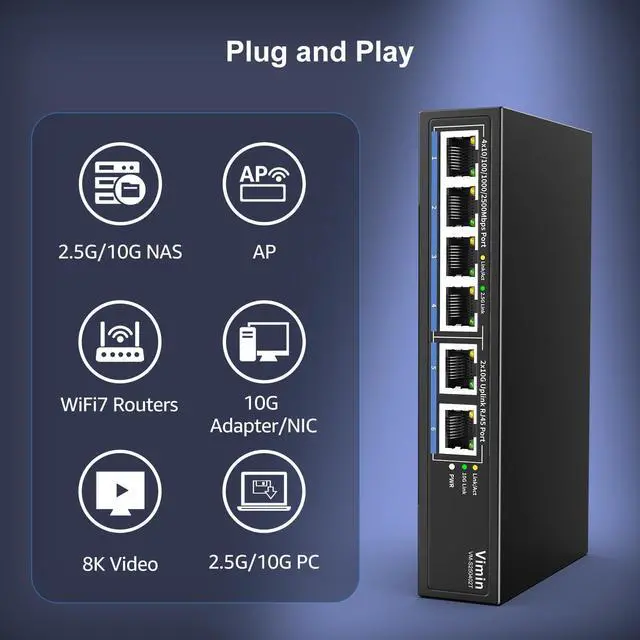 Plug & Play Network Switch - Auto-MDI/MDIX with dynamic LED indicators enables instant deployment - simply connect CAT6A cables for instant 10Gbps uplink without complex configurations.