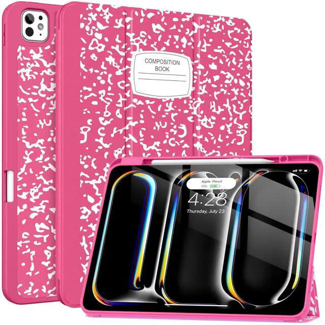 Soke for New iPad Pro 13 Inch Case (M4, 2024 Release), with Pencil Holder Trifold Stand Shockproof [Support Apple Pencil Charging + Auto Wake/Sleep], Soft TPU Back Cover, Book Hot Pink