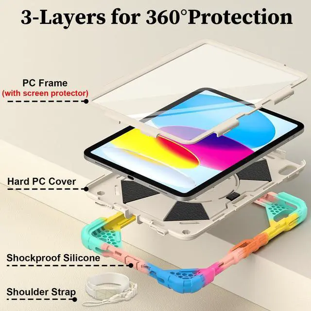 Sturdy 3 Layers Construction: 3-in-1 Layers design provides superb protection for your 10th iPad generation case, and protect iPad 10th generation from slips, scratches and fingerprints.