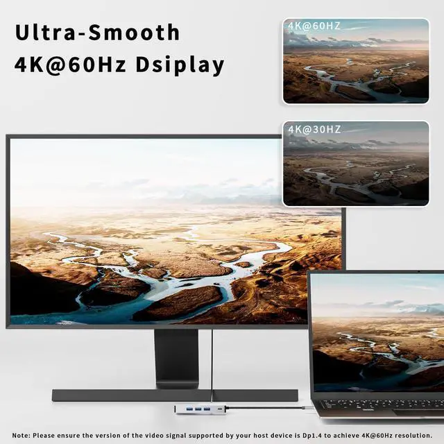 4K 60HZ UHD HDMI Output: The USB C hub HDMI port output up to 4K@60Hz resolution, (3840 x 2160) cystal-clear image,down compatible with 2K@120Hz, 1080P which can perfectly mirror or extend your screen to HDTV, monitor, or projector for Full HD movie, 3D video game, office meetings and entertainment. USB C to HDMI brings you vivid video synchronization.