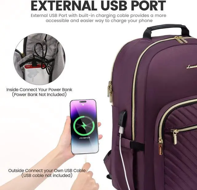 LOVEVOOK Laptop Backpack for Women 15.6 inch,Cute Womens Travel Backpack Purse,Professional Laptop Computer Bag,Waterproof Work Business College Teacher Bag Carry on Backpack with USB Port,Deep Purple
