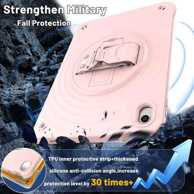 SEVROK Case for iPad A16 11-inch (2025) & iPad 10th Gen 10.9 -inch (2022), HD Screen Protector, Strong Military-Grade Full-Body Shockproof Protection, 360° Rotating Handle Strap & Shoulder Strap, Pink
