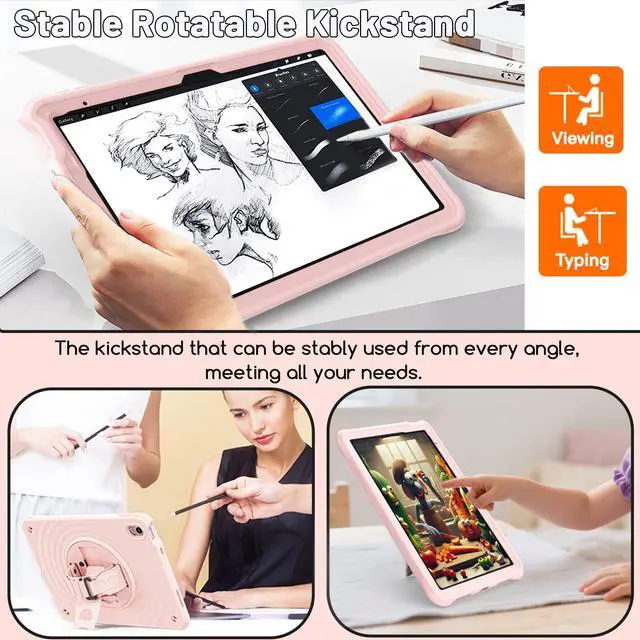 Built-in Kickstand & 360° Rotating Hand StrapThe integrated kickstand offers convenient hands-free viewing for videos and typing. The versati