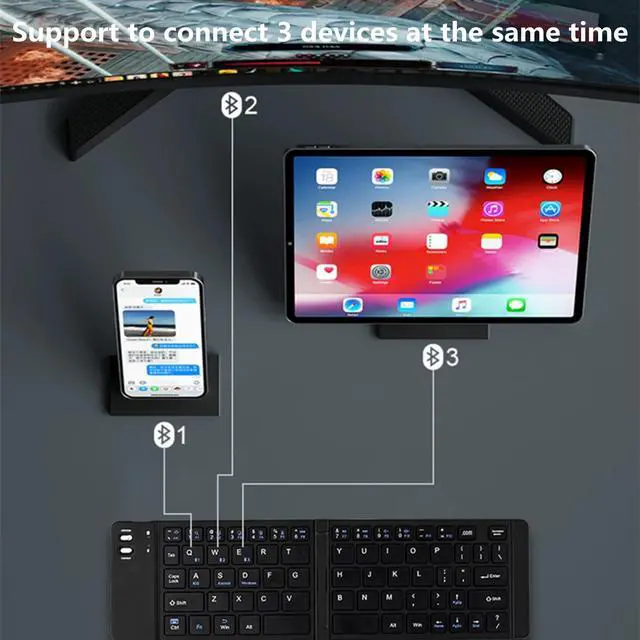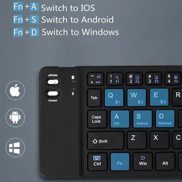 Support to Connect 3 DevicesSmall Bluetooth keyboard allows you to pair up to 3 devices on triple Bluetooth channels simultaneously. Easy switch at a press of button. Compatible with Windows, Mac OS, iOS or Android device, you can work with your ipad, phone, tablet or laptop etc