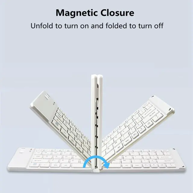 Folding Design Foldable portable Bluetooth keyboard designed with 66-key (Dimensions: 296*86*9mm ). You can adapt to its layout and enter into working state anywhere. The non-slip pads at the bottom keeps the keyboard balanced and stable, it won't move when typing