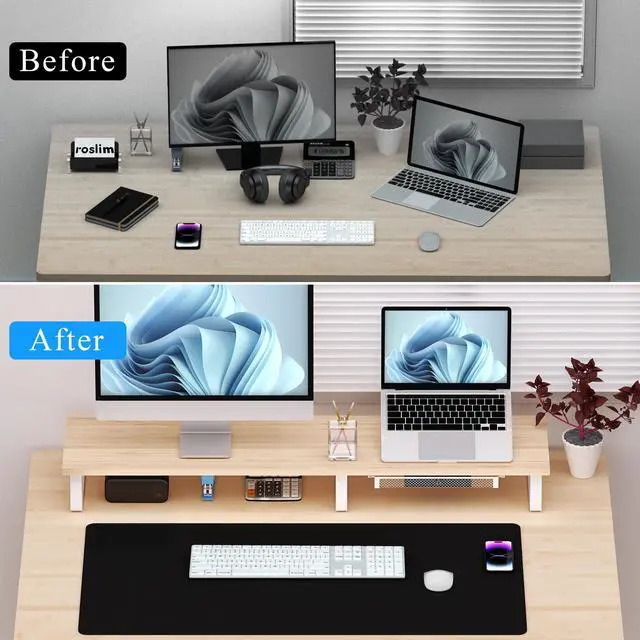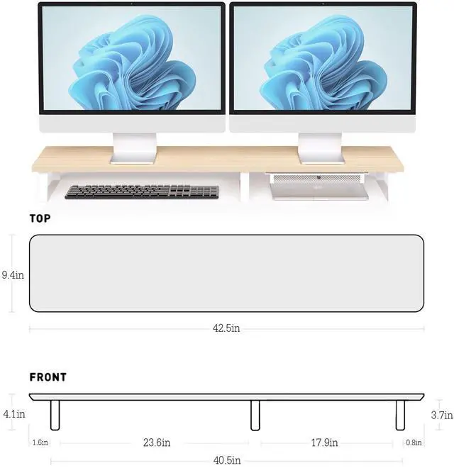 Sturdy and Durable Office Accessory: Made with sturdy materials, this office desk dual monitor riser is exceptionally durable. Whether you use it for two monitors or as a computer monitor riser, it can easily support the weight and maintain stability (With a maximum weight capacity of up to 50kg). It can also serve as a versatile stand for your printer, TV screens, laptops, etc.