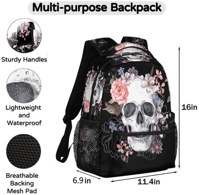 DJYQBFA Sugar Skull Flower Laptop Backpack School Backpack with Multiple Pockets Hiking Shoulder Daypack Large College Backpack for Men Women Kids