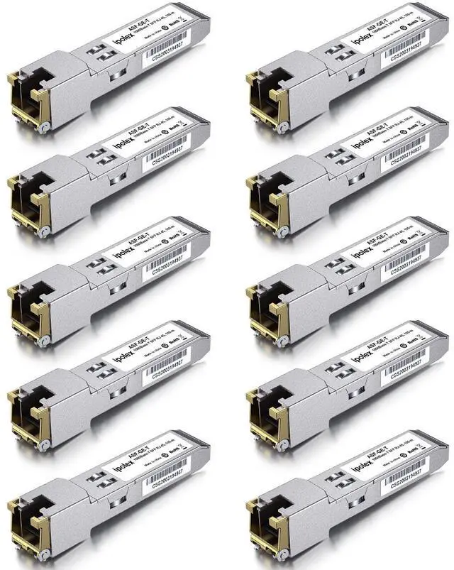 ipolex 1.25G SFP Copper Transceiver, 1000Base-T SFP to RJ45 SFP Module, Up to 100m, Gigabit SFP RJ45 Transceiver for Cisco, Ubiquiti UF-RJ45-1G, Mikrotik, Intel, Fortinet, Netgear and More, 10 Pack