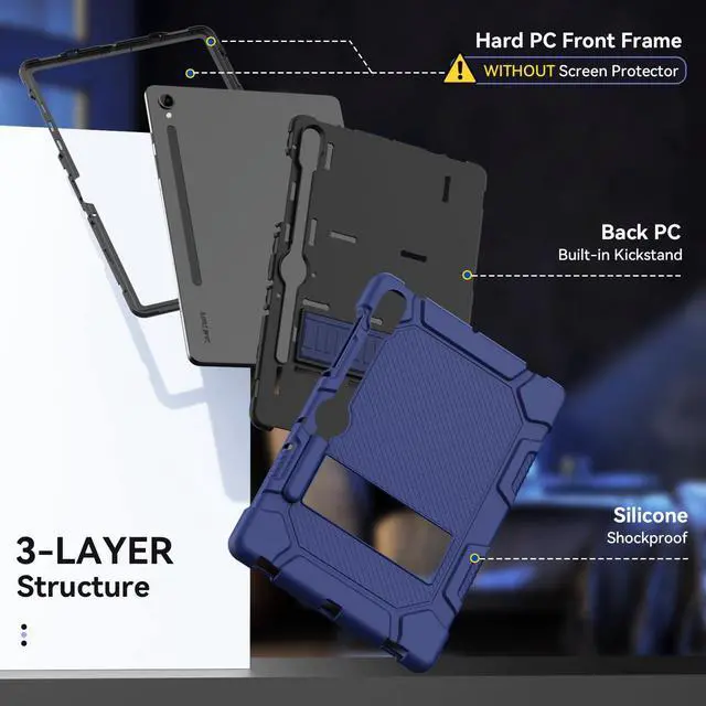 Built-in Kickstand: The Galaxy Tab S9 FE 5G case built-in kickstand provides 2 different angles, which gives you the convenience in watching videos, studying & gaming, etc. NO Screen Protector inside