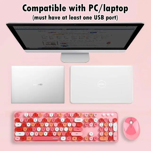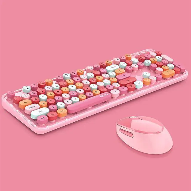 2.4G USB Wireless Keyboard and Mouse Combo, Multi-Color Typewriter Style Round Keycap, Cute Candy Colors, Compatible with Notebook, PC