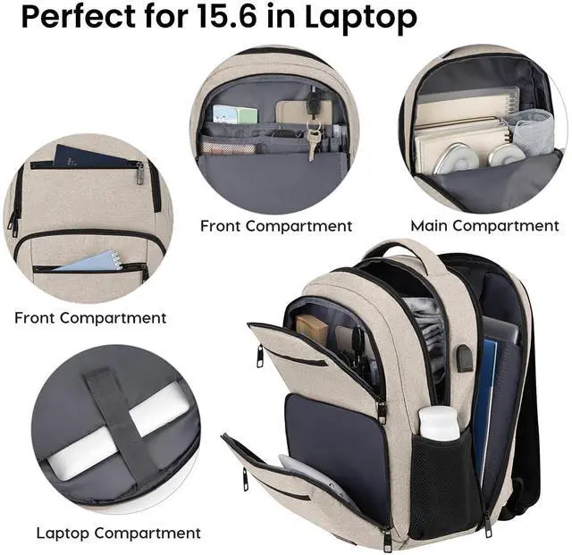 STORAGE SPACE&POCKETS: The main pocket is equipped with a separate laptop soft compartment hold 15.6-inch laptops and 15-inch, 14-inch and 13-inch Macbooks/notebooks. The soft sponge design will protect your laptop. Outside the compartment, a more spacious packing compartment roomy hold an iPad, mouse, charger, binder, books, clothes, etc. Mesh pockets are located on the sides of water bottles and compact umbrellas to keep your belongings organized and easier to find.