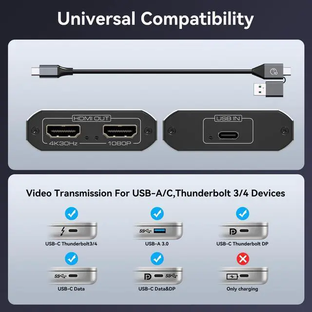 Universal Compatibility: Dual HDMI adapter compatible with all computers or laptops (Mac) with USBA 3.0, USBC or Thunderbolt ports. By in