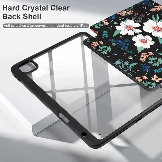 Batianda Case for iPad Pro 11-inch 2022 4th M2 Chip 2021 (3rd Generation) / iPad Pro 11" 2nd Gen 2020 [Built-in Pencil Holder] Shockproof Cover with Clear Transparent Back Shell TPU Bumper,Flowers