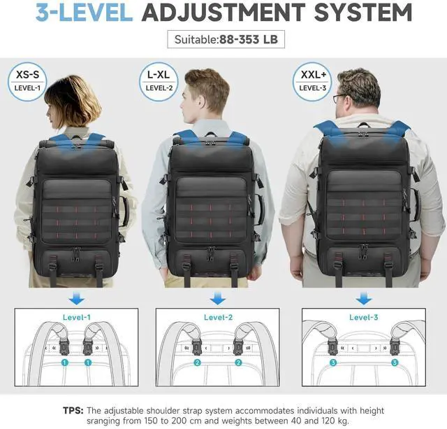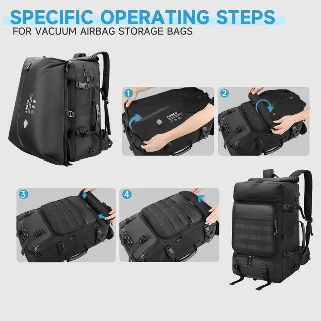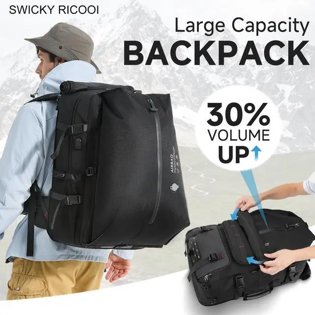 Large Capacity Backpack Built-in airbag storage bag increases volume by 30%, allowing for convenient and quick storage of clothing and other items. Ideal travel companion for international trips, camping, and overnight stays.