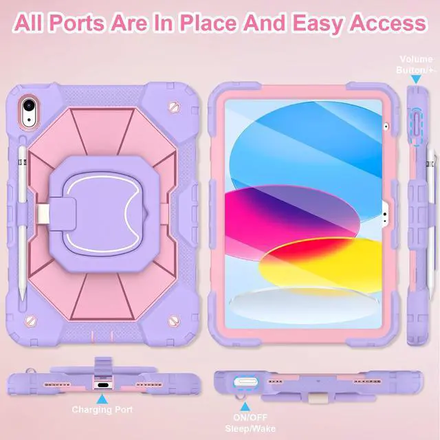 Mil-Grade Drop ProtectionThe ipad 10.9 inch 10th gen case is made of shockproof PC and soft silicone,upgrad grade thickened corners & shock-proof design,with built-in screen protector to prevent daily scratches caused by rough surfaces or sharp objects and raised edges to protect camera,super shock absorption provides full body protectio