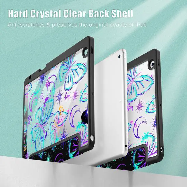 Full Body Protection: Made of Premium Clear exterior and soft TPU back cover, 360 fully protect your iPad against shocks, drops and impacts. Soft microfiber lining prevents your tablet screen from scratches.