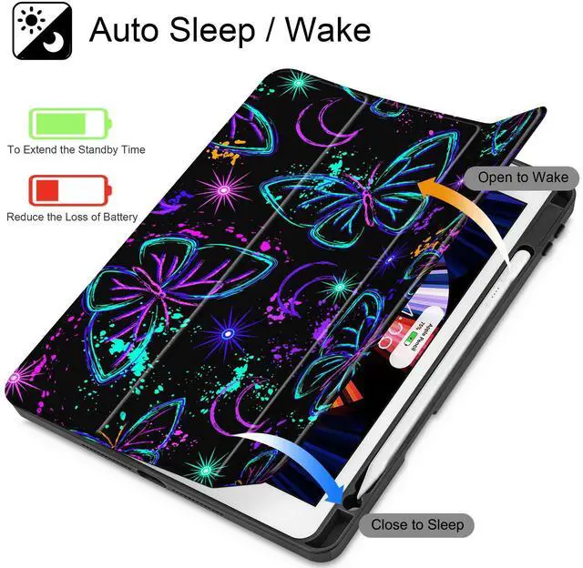 Multi-function Stand: Slim Lightweight Trifold Stand provides viewing and typing stand mode, Magnetic smart cover supports auto wake & sleep function. Powerful magnet secures the case closure, more convenient to snap on and off the tablet, extend the battery life.