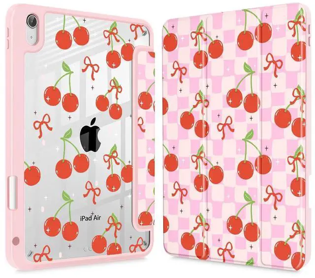 Lepeoac Case for iPad Air 11'' (M3 2025/M2 2024) 6th Gen/iPad Air 10.9 '' 2022 2020 Air 5th /4th Gen, Buit in Pencil Holder with Cover Clear Transparent Back Auto Wake/Sleep, Cherries and Bow
