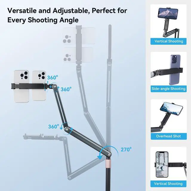 One-Click Overhead Shots: Ditch clumsy tripodsthe weighted base stays put while the gooseneck positions your device directly above work surfaces