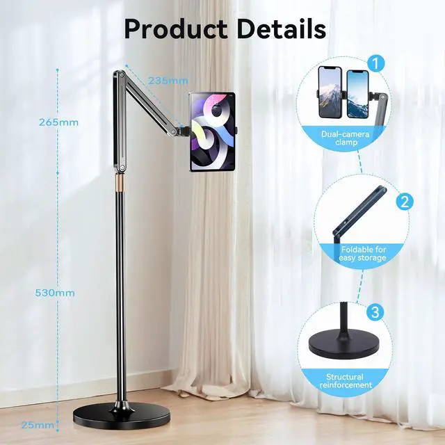 Load Capacity: 3kg ( 6.6 lbs)holds iPad Pro 12.9" + heavy cases